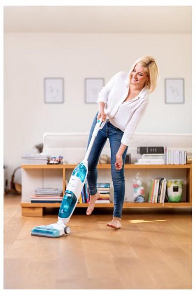 A legjobb eredmény elérése érdekében óvatosan tisztítsa a padlót kombinált súroló-, szárítógéppel, és közepes keménységű kefével vagy lehetőség szerint piros súrolókoronggal.