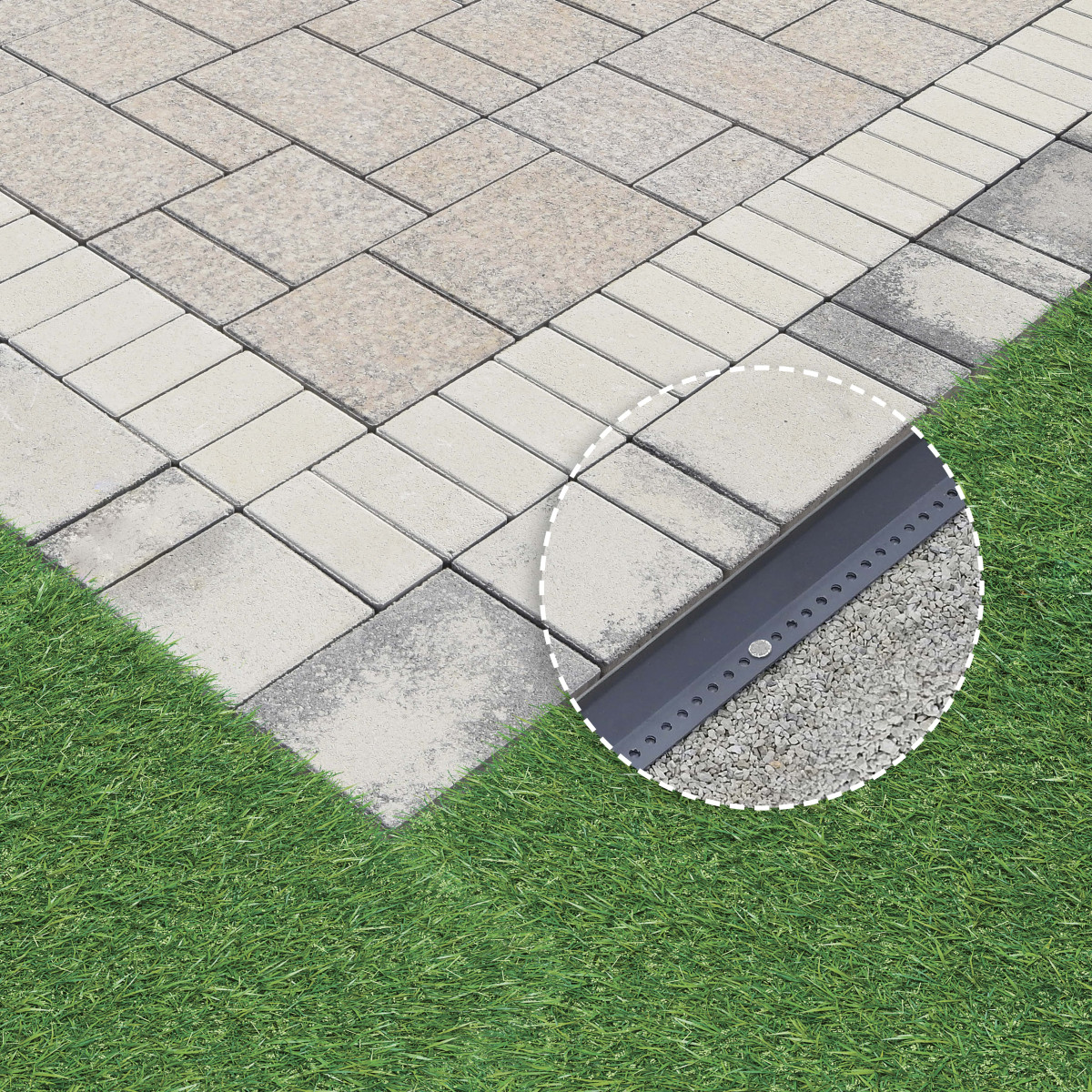 Egyenes és íves kivitelben is létezik így a köralakú mintázatok kialakításához kifejezetten ajánljuk! Egyáltalán nem látszik a térkő mellett. Engedi lefolyni a vizet a térkő tetejéről és utána azt kifolyni a térkő alatti rétegekből is. Összköltségét tekintve nem drágább, mint a beton kerti szegély és akár többször újra felhasználható.