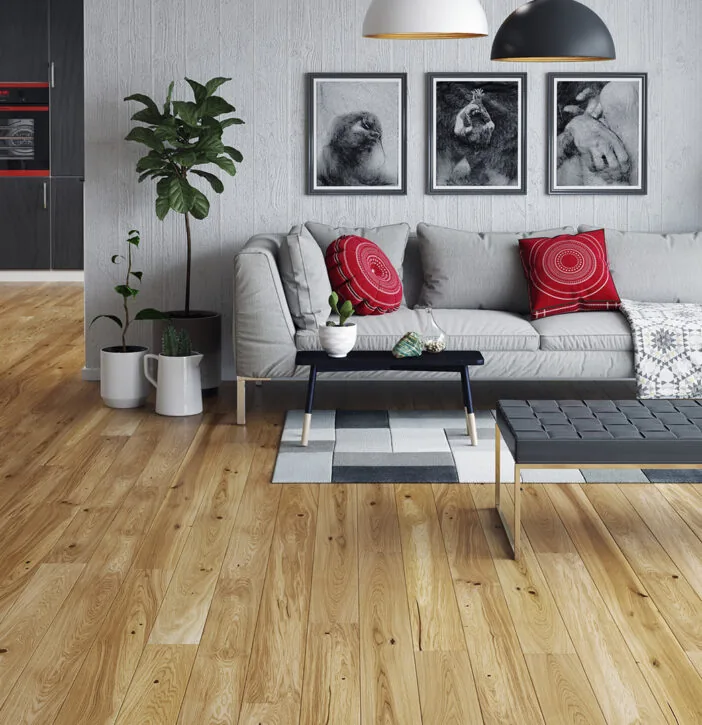 A ferde élek miatt a Conchi Piccolo 1-sávos padló hosszabbnak és könnyebbnek tűnik. A tölgyet kiváló használati paraméterei jellemzik. A padló félmatt lakkozással van bevonva.