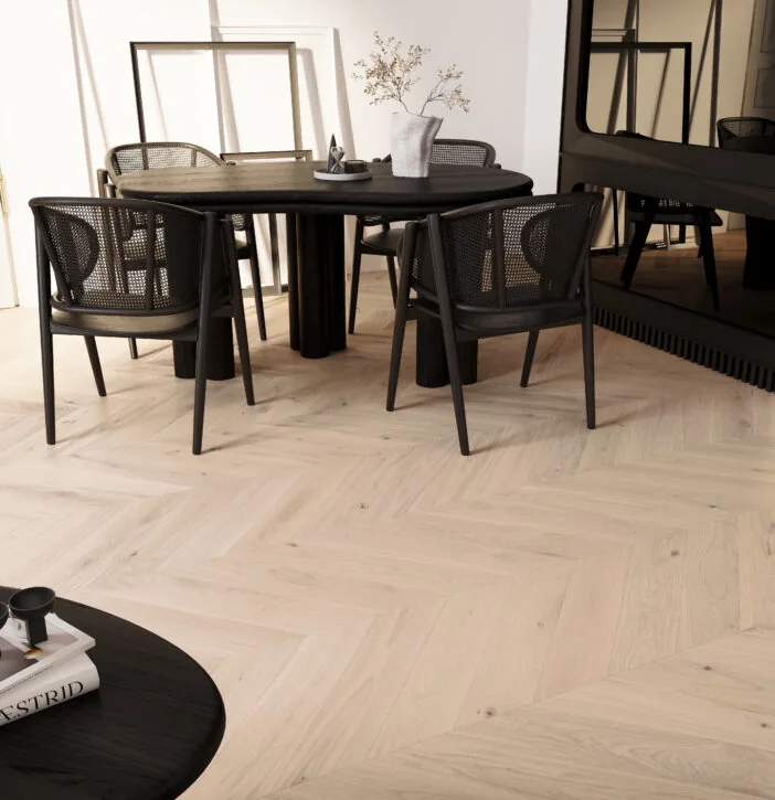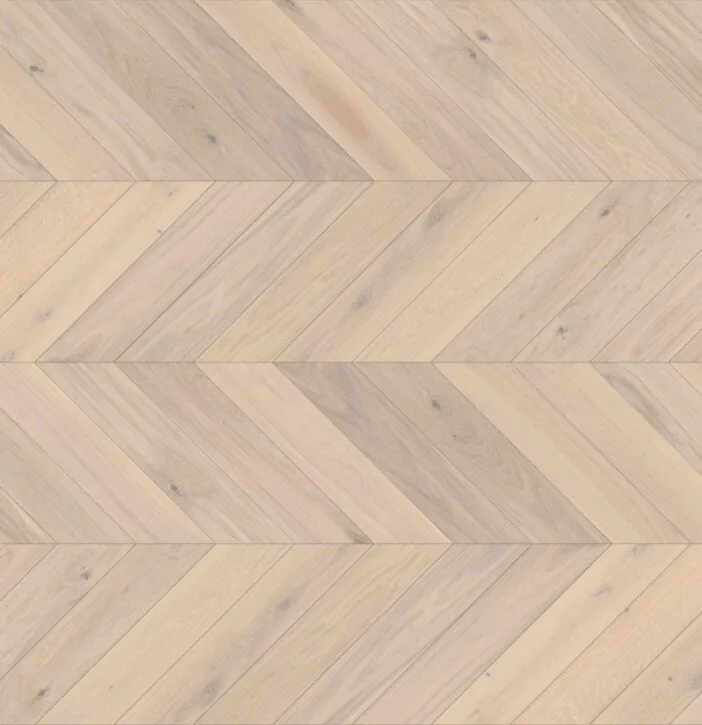 Klasszikus tölgyfa padló, finoman lágyított gyöngyházfehér árnyalattal. A padló finom természetes tulajdonságokkal bír, amit a csiszolási folyamat még jobban kihangsúlyoz. A padló karcsúságát és könnyedségét a 4 oldalú mikro-bevágással érik el Matt lakkozással készült.