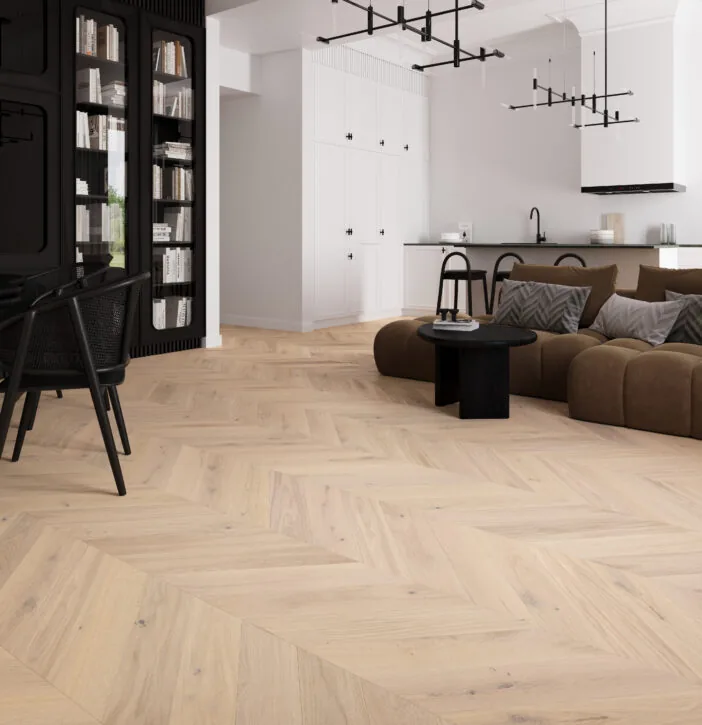 Melegburkolat_Barlinek matt-lakkozott szalagparketta Trivor Tölgy Chevron 725*130*14 mm