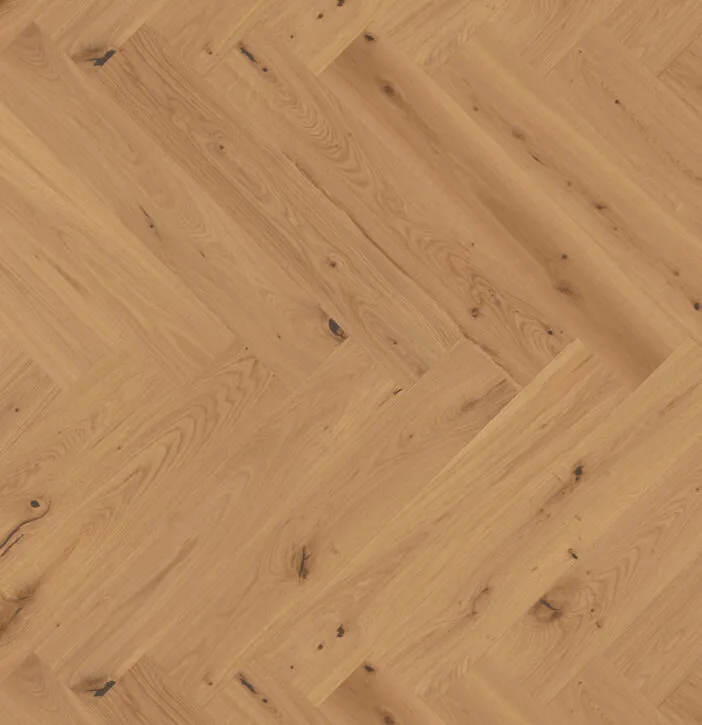 1-sávos tölgyfa padló az arany és a meleg barna tónusaiban. Az olajjal bevont natúr padlók vékonyságát 4 oldali levágással érik el. A fa egyedisége és gazdagsága a csiszolási folyamat során kiemelésre kerül.