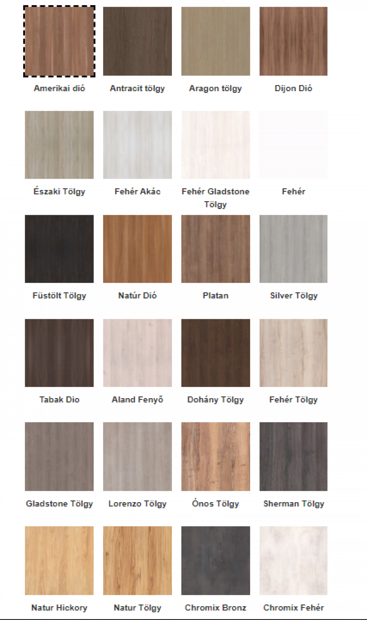 - dekorfóliás, laminált vagy dekorfestett felület