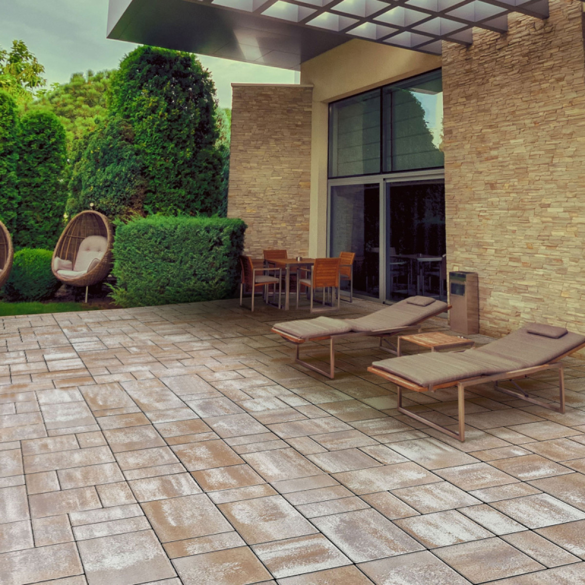 Ismerje meg a Vértes térkövet: karakteres mintázat, a Somló Trió erőteljesebb jellegével, méretében azonban egy kicsit nagyobb kövekből építkező kombi forma. Természetes árnyalatának köszönhetően, harmonikus és otthonos hangulatot ad minden kültéri felületnek.