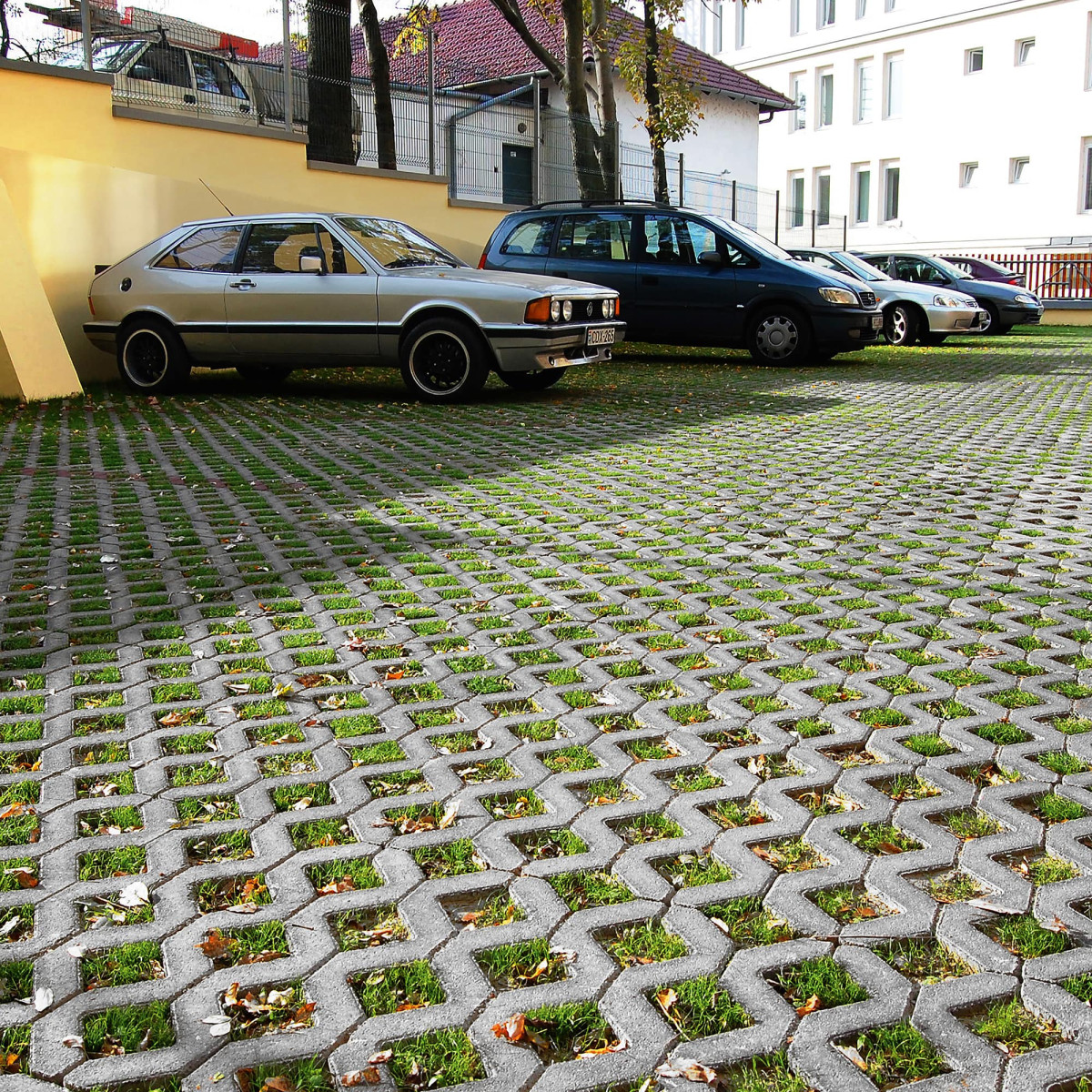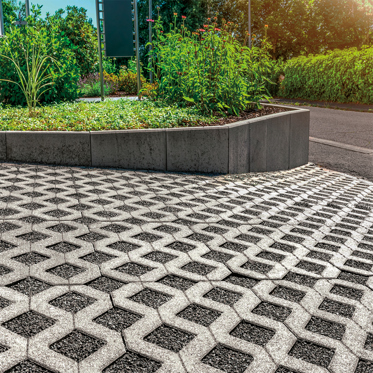 Amikor a parkoló felületek kialakításakor előírás a zöld felületek megtartása, de műszakilag indokolt a gépjárműforgalom miatti terhelhetőség, a legrégebbi, jól bevált és már bizonyított burkolati megoldás, a Gyephézagos térkő alkalmazása. A beton átmelegedése miatt, a nyári időszakokban a felületet gondozni kell, a nedvesen tartásáról öntözéssel kell gondoskodni, hogy a fű ne égjen ki.Alkalmazása: