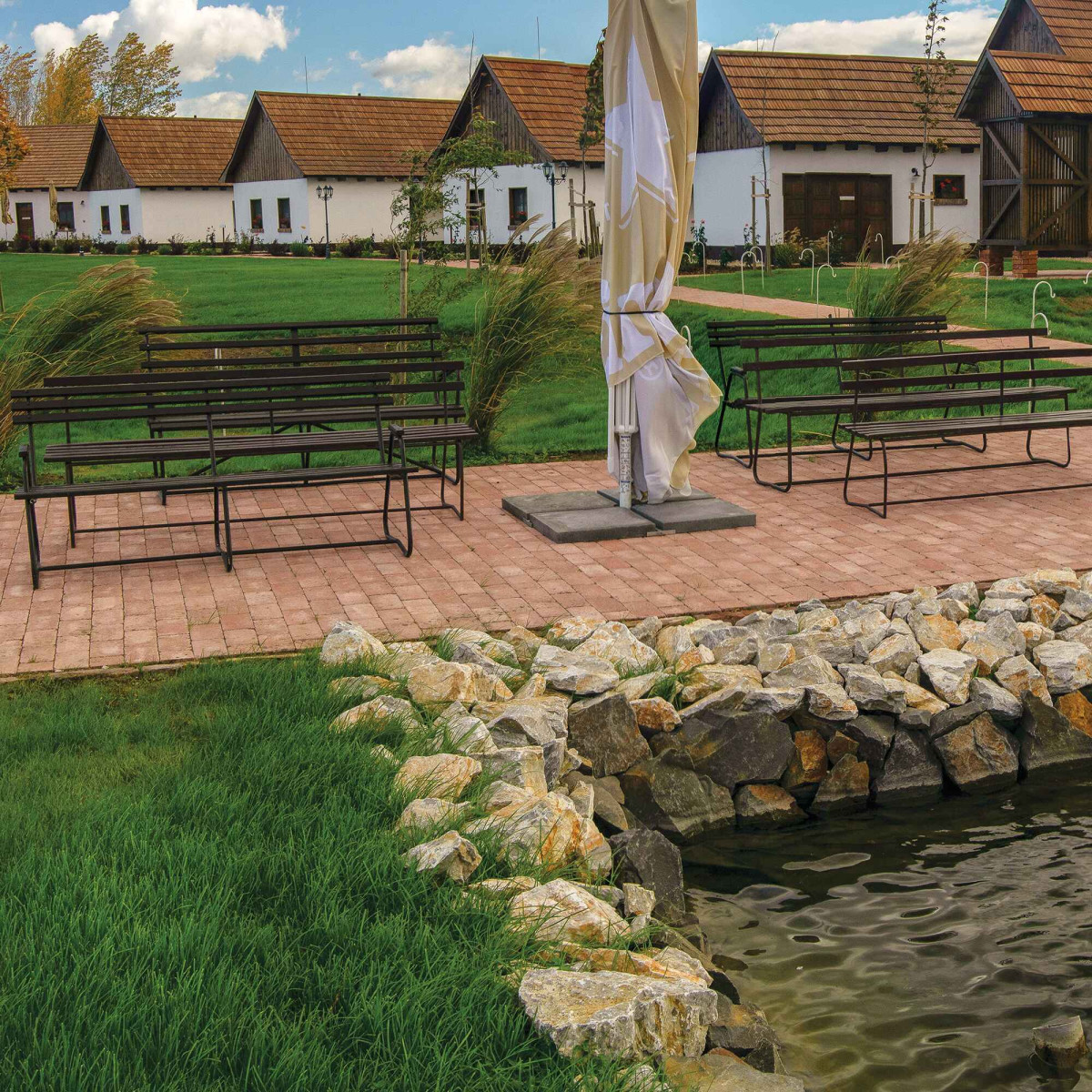 • Kerti építmények, padok, növénytámaszok, grill és szalonnasütők, pergolák, lugasok, kerti csobogók, dísz kutak, gyaloghidak, kerti lépcsők